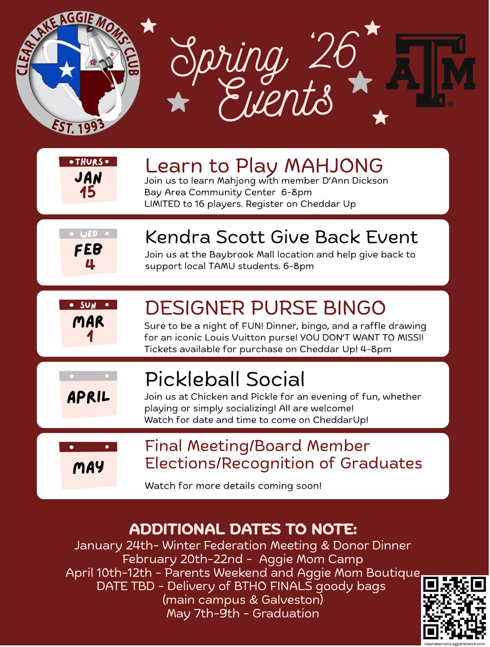 If you have questions about our club, please e-mail clearlakemoms@aggiemoms.org
